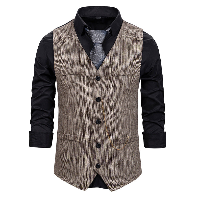 • Elegantes Design: Das Fischgrätmuster verleiht der Weste eine klassische, zeitlose Ästhetik, die zu jeder Garderobe passt.