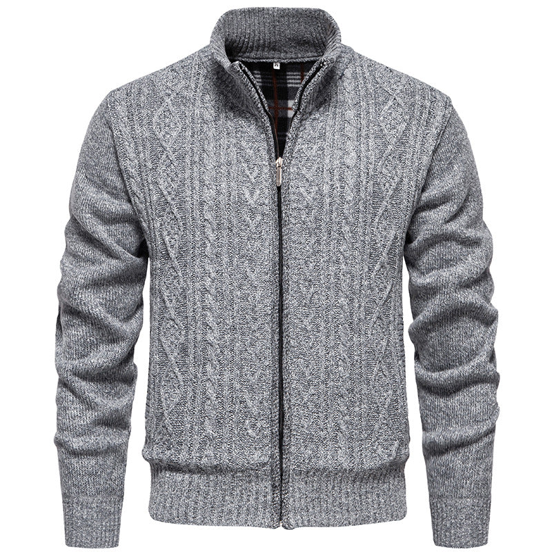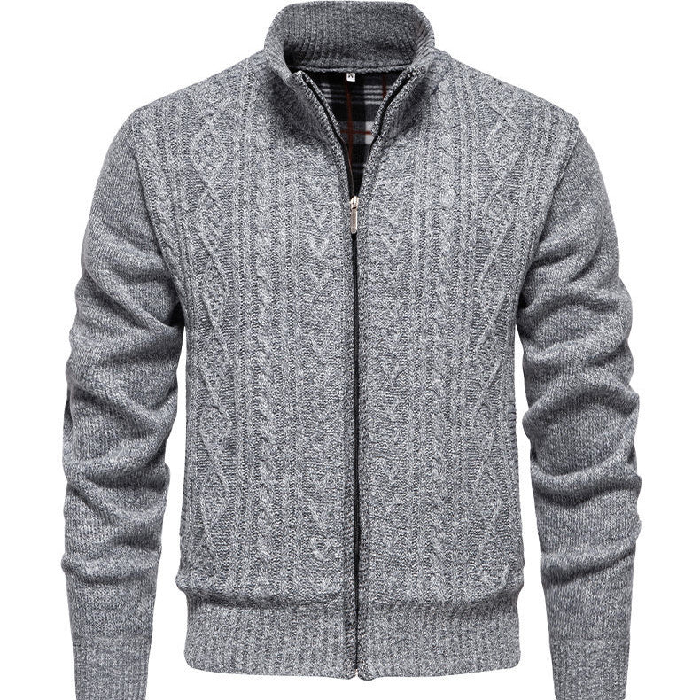 Herren Strickjacke mit hohem Kragen und Reißverschluss Heidi-Mode