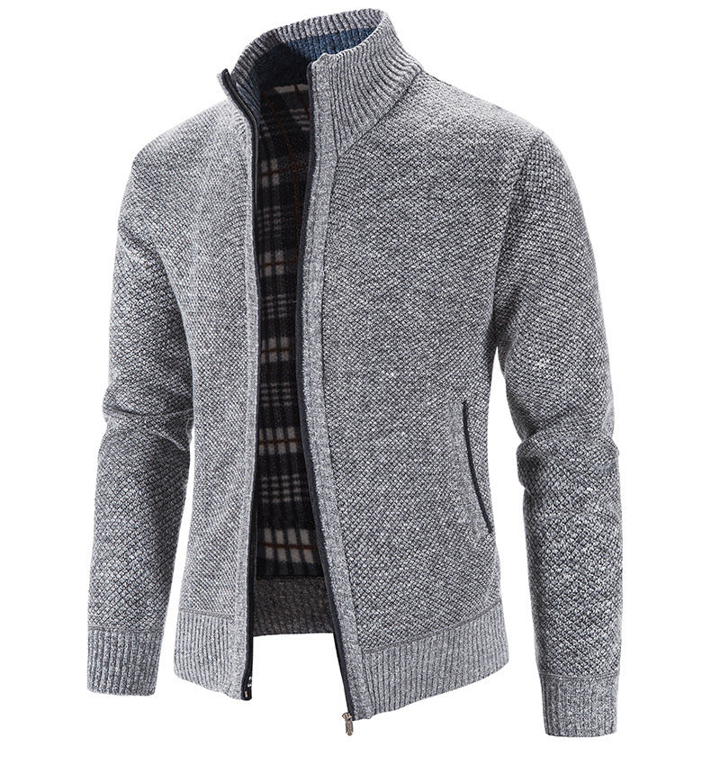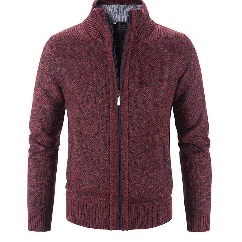 Herren Strickjacke mit strukturiertem Muster und hohem Stehkragen Heidi-Mode