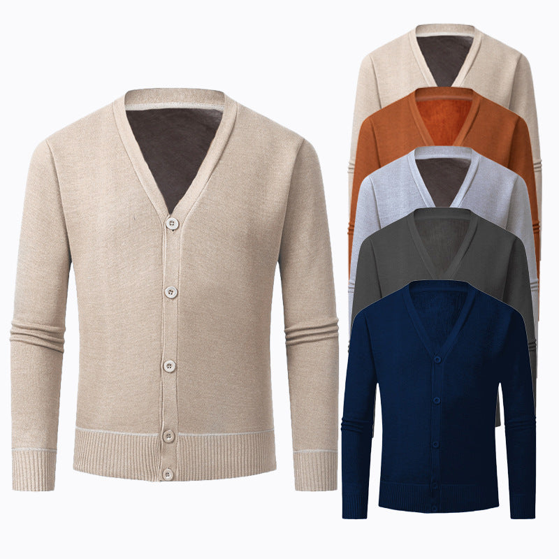 Herren Strickjacke mit V-Ausschnitt und knopflosem Design Heidi-Mode