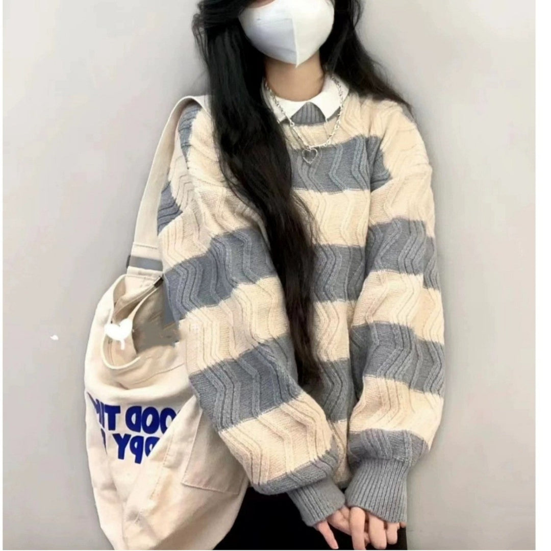 Damen Modischer Strickpullover mit maritimem Streifenmuster und lässigem Schnitt Heidi-Mode