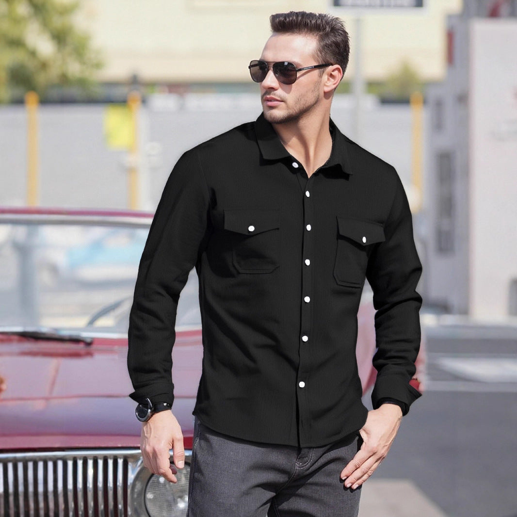 Herren Lässiges Langarmhemd mit praktischen Brusttaschen und modernem Schnitt Heidi-Mode