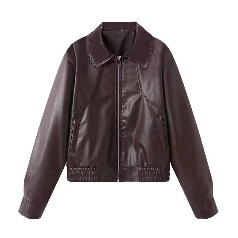 Damen modische Kunstlederjacke im lässigen Schnitt mit elastischem Bund Heidi-Mode