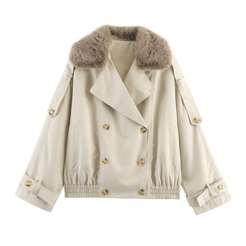 Damen modische Jacke mit kunstvollem Fellkragen und doppelter Knopfblende Heidi-Mode