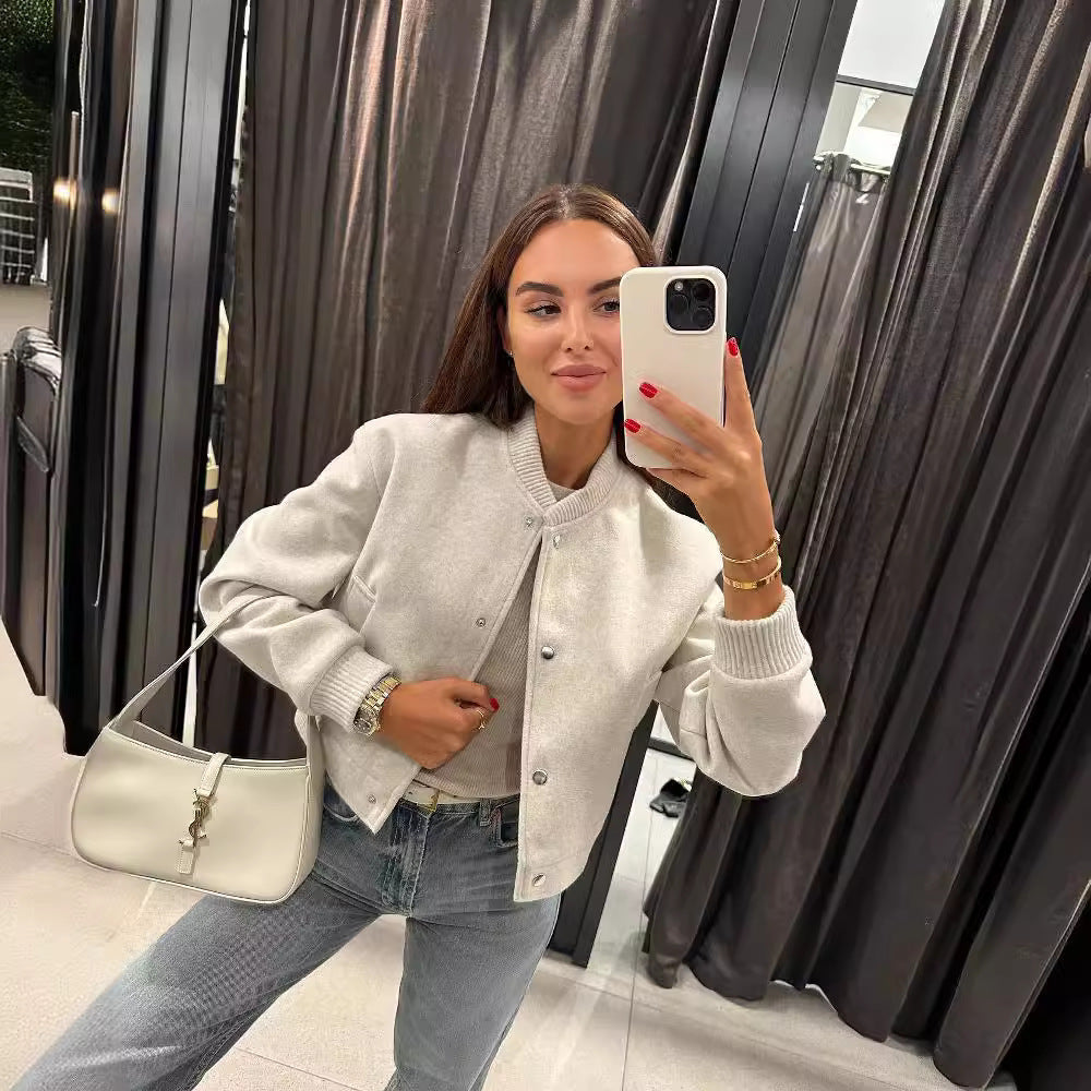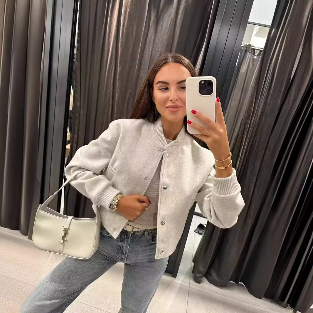 Damen lässige Bomberjacke aus hochwertiger Wollmischung Heidi-Mode