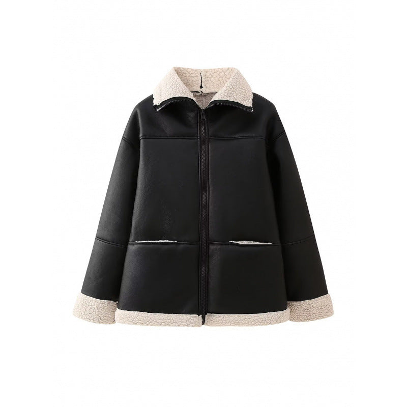 Damen Kunstlederjacke mit gemütlichem Teddyfutter und praktischen Taschen Heidi-Mode