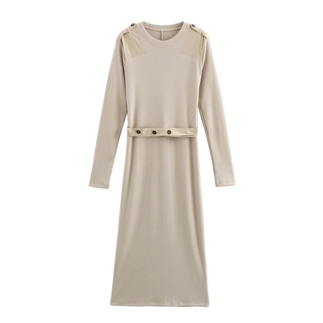 Damen Langarm-Kleid mit dekorativem Gürtel und Schulterdetails Heidi-Mode