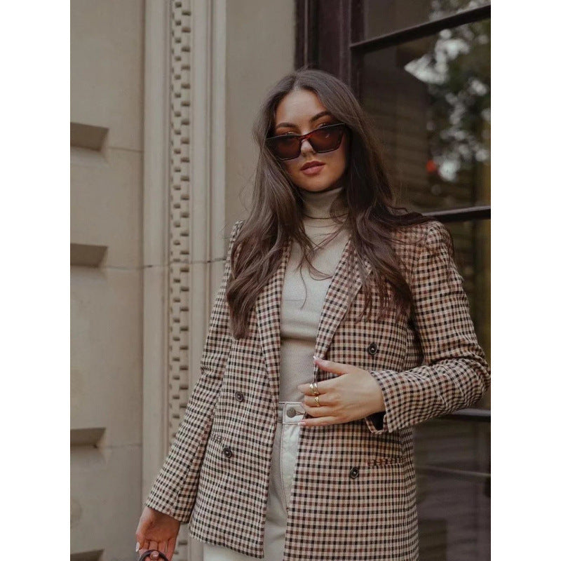 Damen kariertes Blazerjacke mit doppelter Knopfreihe und idealem Schnitt Heidi-Mode