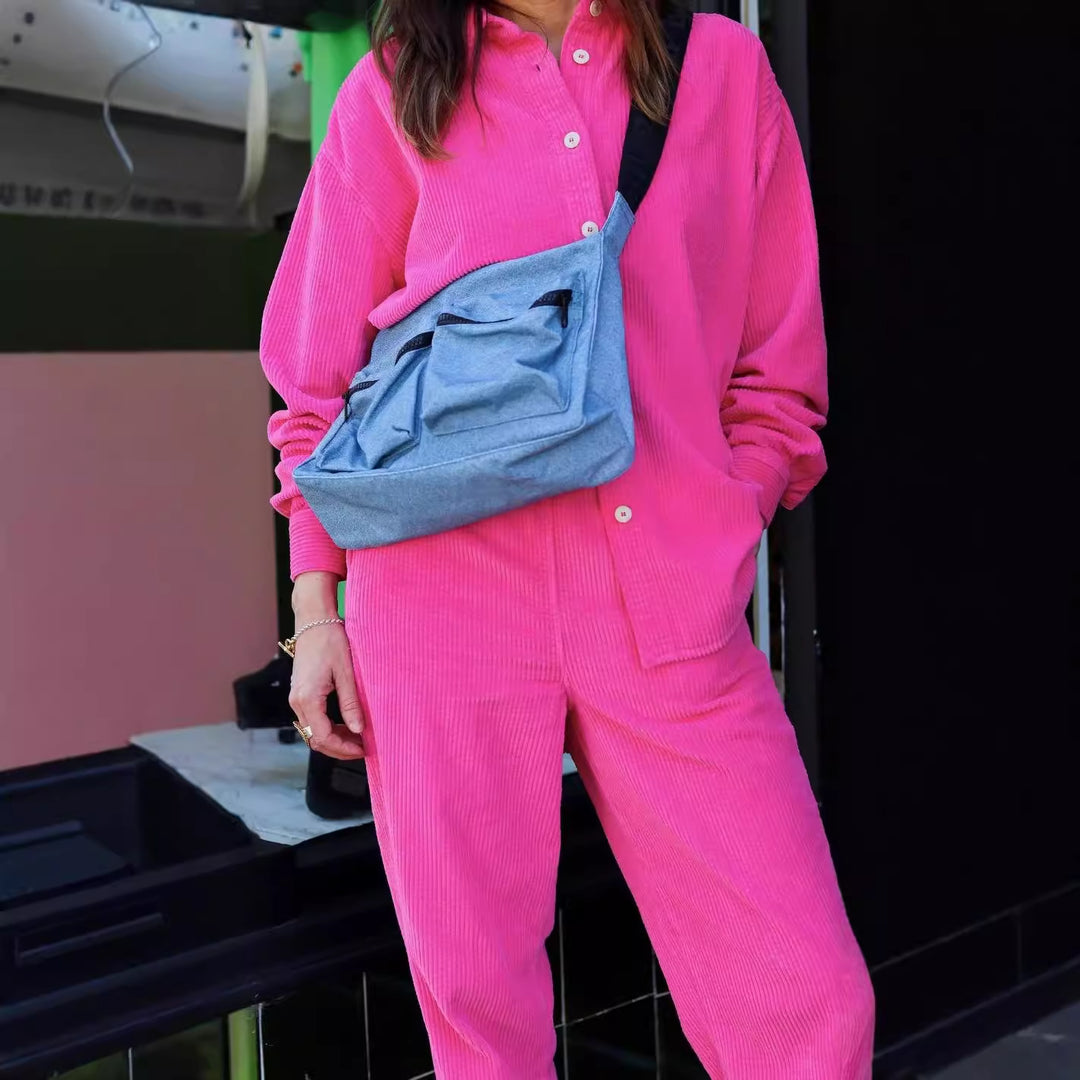 Damen Lässiges Cord-Set mit Knopfleiste und praktischen Taschen Heidi-Mode