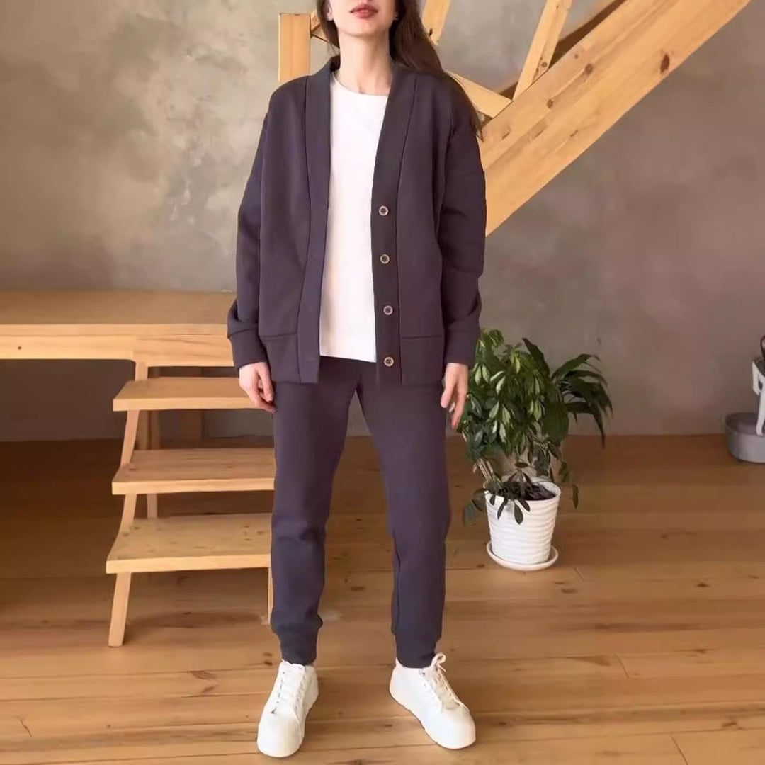 Damen Lässiges Freizeitsweat-Set mit V-Ausschnitt und weitem Schnitt Heidi-Mode