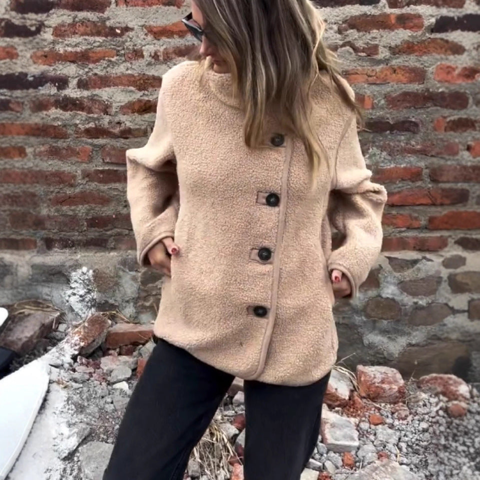 Damen Modische Oversized-Wolljacke mit Knopfdetails und weitem Schnitt Heidi-Mode