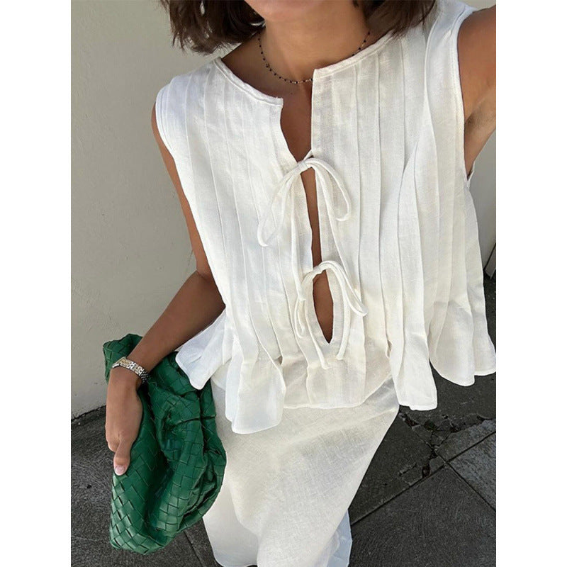 Damen Plissee Oberteil mit romantischen Bindebändern Heidi-Mode