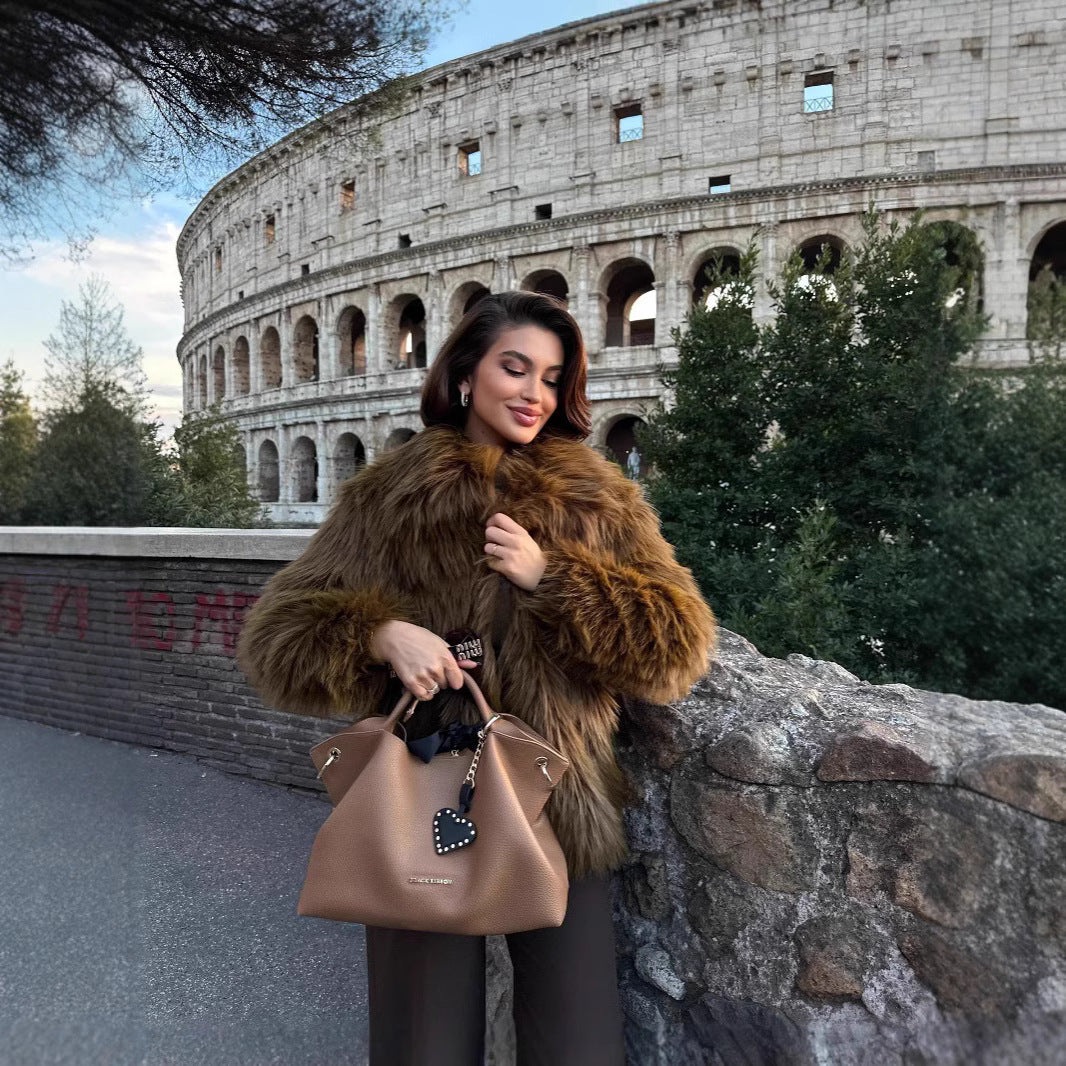 Damen luxuriöser Kunstfellmantel mit breitem Kragen und eleganten Details Heidi-Mode