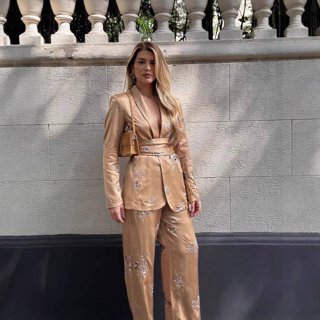Damen Elegantes und hochwertiges Hosenanzug-Set mit feiner Stickerei Heidi-Mode
