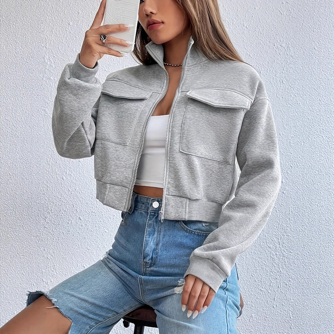 Damen Modische Kurzjacke mit Stehkragen und praktischen Taschen Heidi-Mode