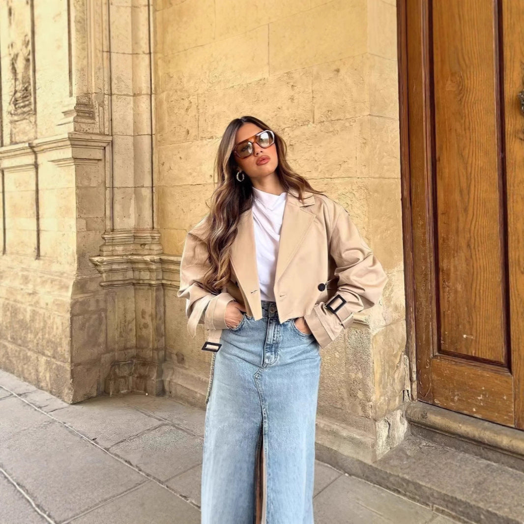 Damen moderne cropped Trenchjacke Heidi-Mode