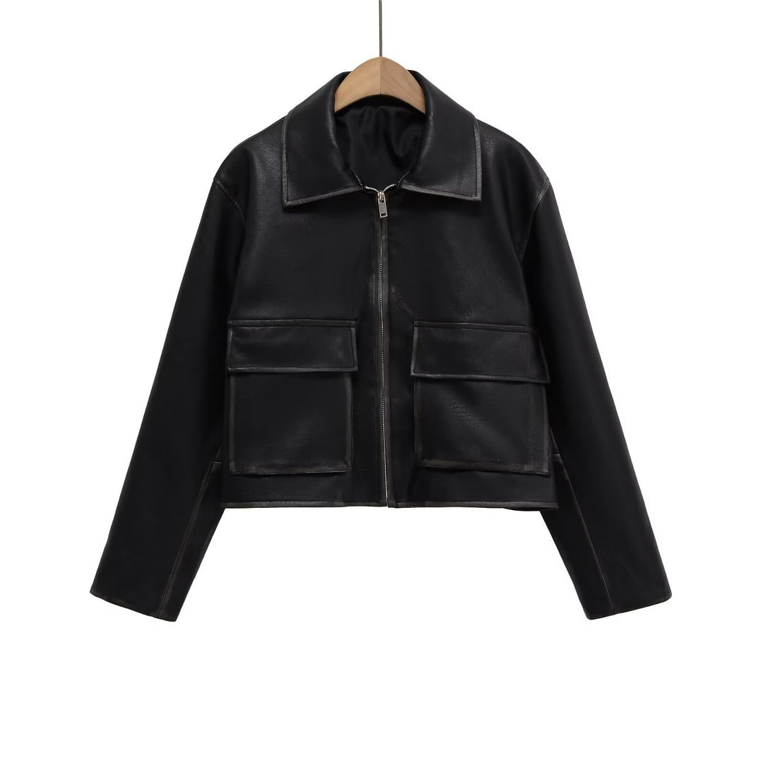 Damen Kurzgeschnittene Lederjacke mit Taschen Heidi-Mode