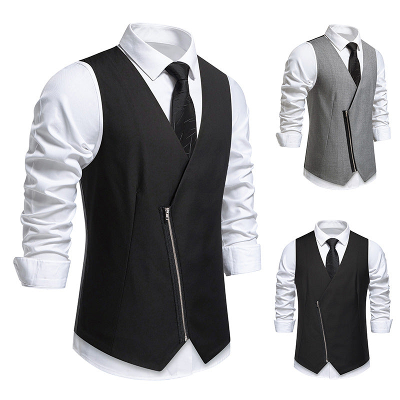 Herren Weste mit asymmetrischem Zipper-Design und modernem Schnitt Heidi-Mode