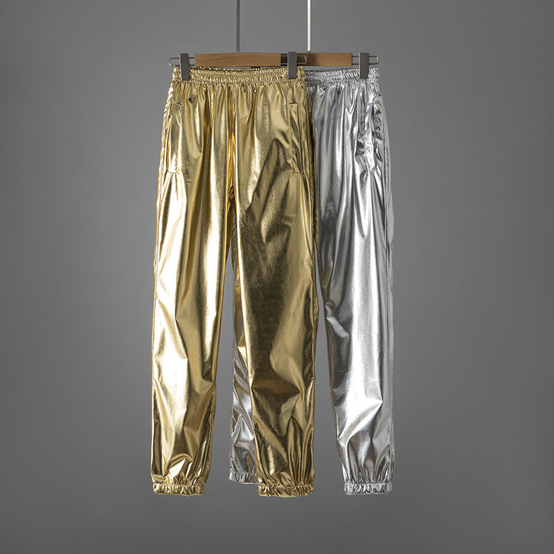 Damen Glänzende Fitnesshose mit elastischem Bund und seitlichen Eingrifftaschen Heidi-Mode