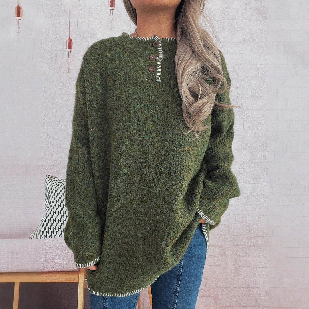 Damen Oversize Strickpullover mit Knopfleiste Heidi-Mode
