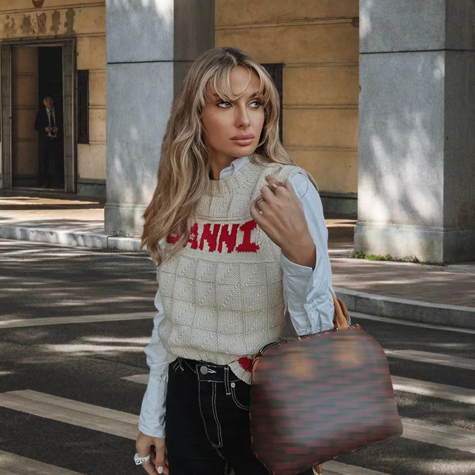 Damen Sportliche Strickweste mit modernem Karomuster Heidi-Mode