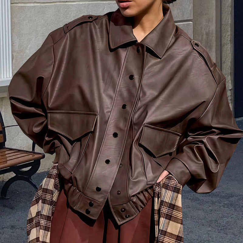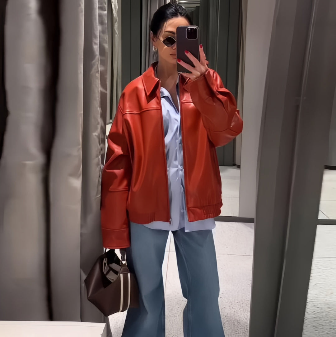 Damen Oversized Kunstlederjacke mit großzügigem Schnitt und modischen Details Heidi-Mode