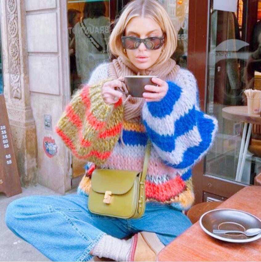 Damen Grobstrickpullover mit buntem Zopfmuster und weitem Schnitt Heidi-Mode