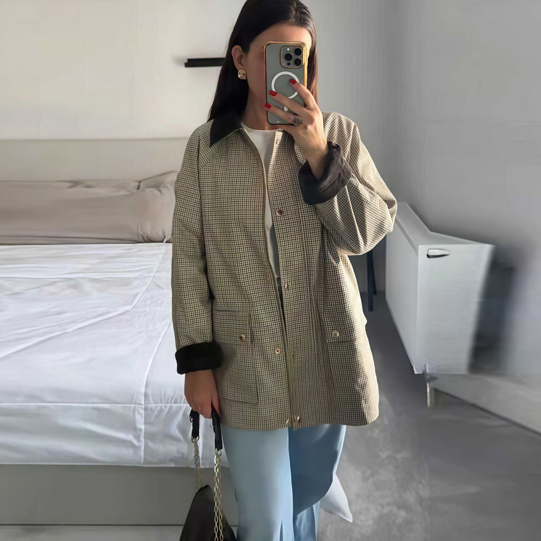 Damen Karierte Utility-Jacke mit modernem Schnitt und praktischen Taschen Heidi-Mode