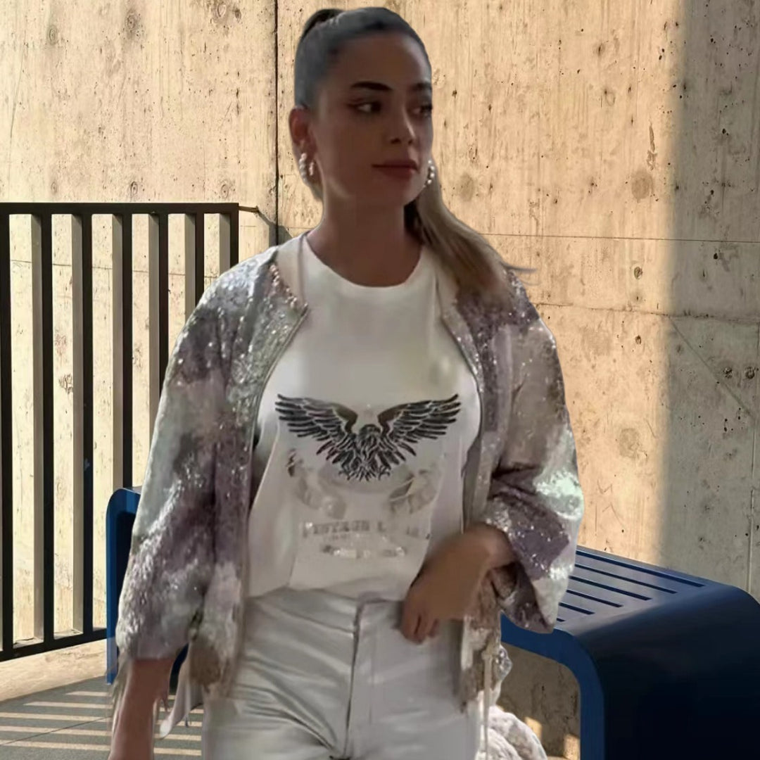 Damen Glitzernde Paillettenjacke mit modischem Schnitt Heidi-Mode