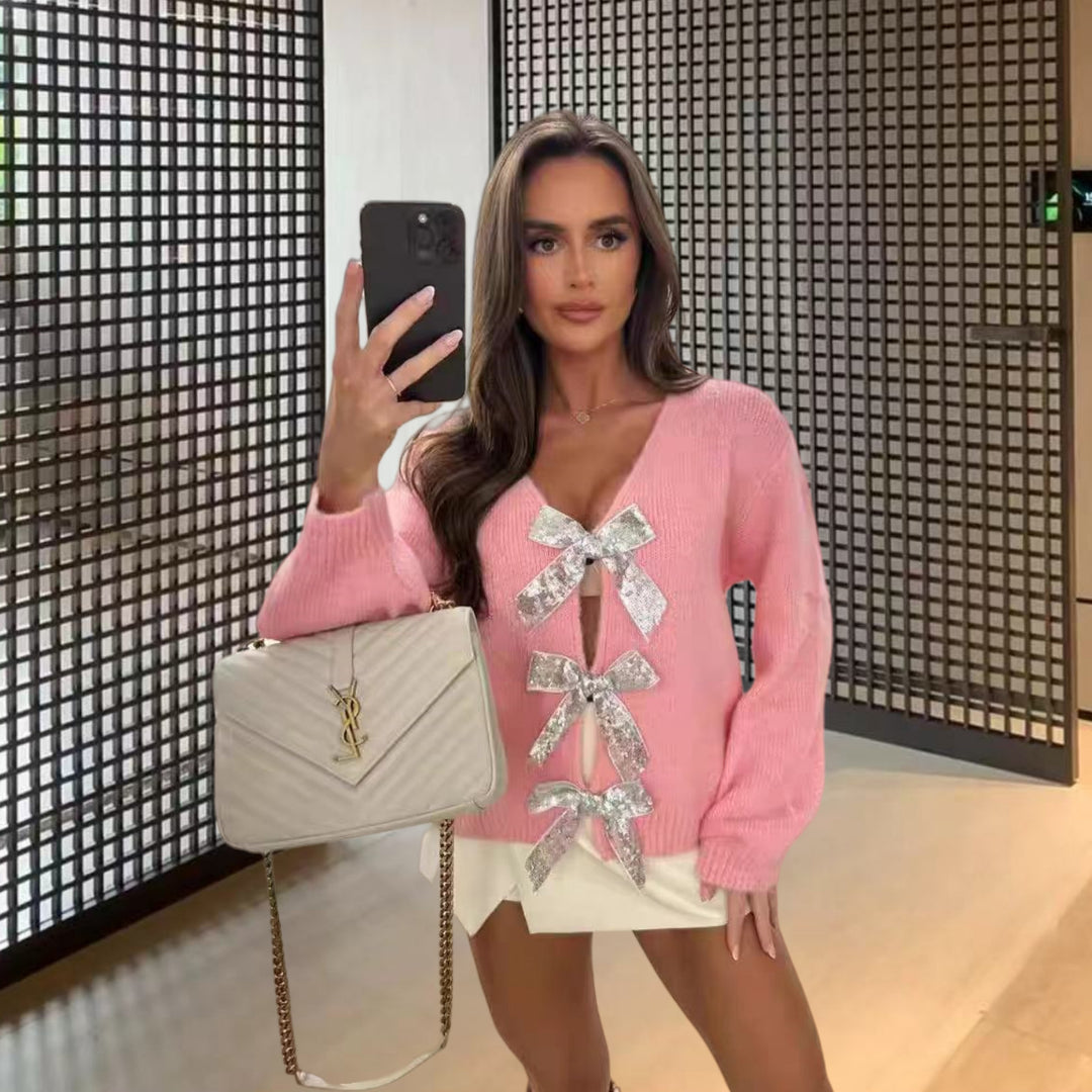 Damen Elegante Jacke mit Paillettenbesatz und Schleifen-Detail Heidi-Mode