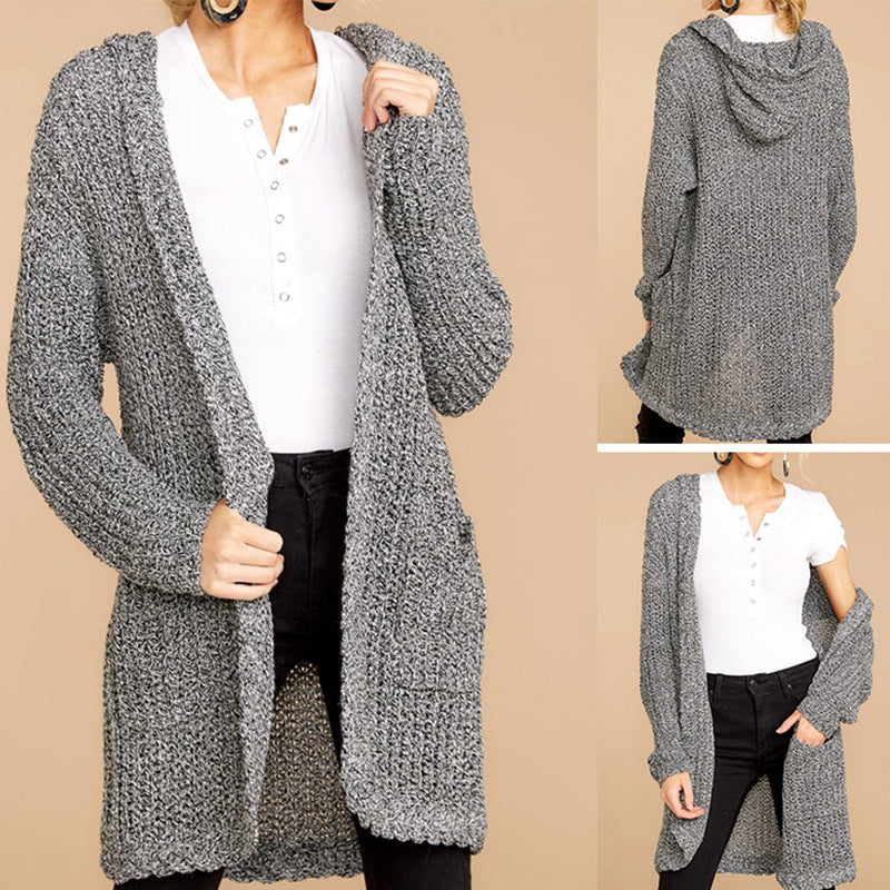 Damen lässige Strickjacke mit Kapuze und strukturiertem Design Heidi-Mode
