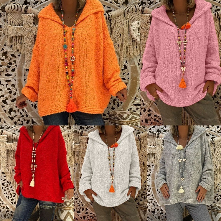 Damen bequemer Strickpullover mit Kapuze und lässigem Schnitt Heidi-Mode