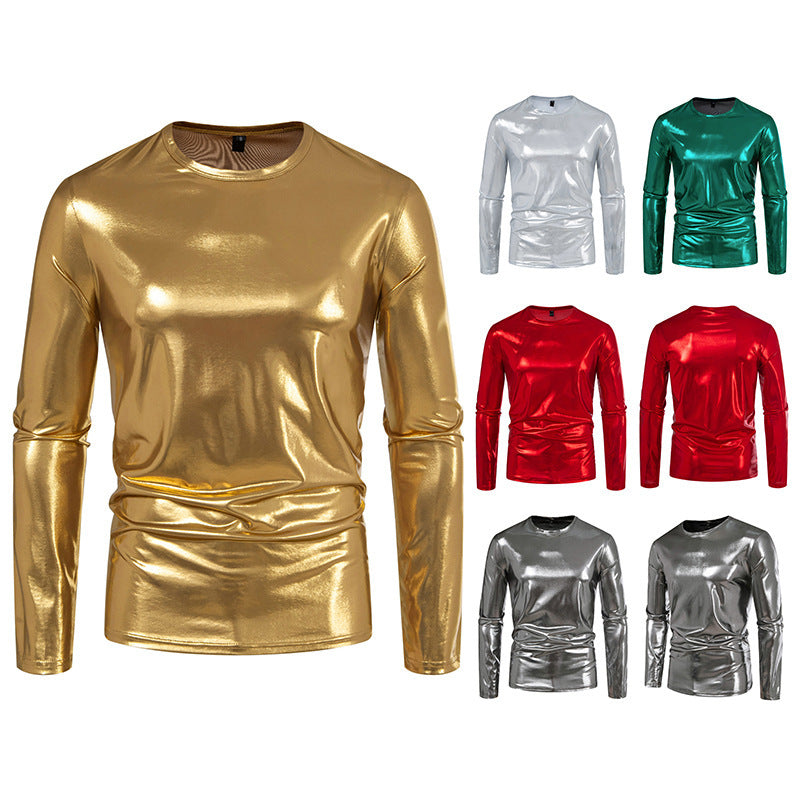 Herren stylisches Langarmshirt aus glänzendem Material Heidi-Mode