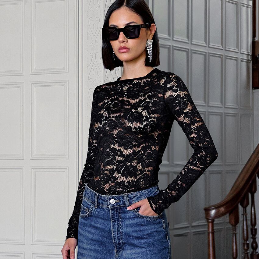 Damen Oberteil aus zarter Spitze Heidi-Mode