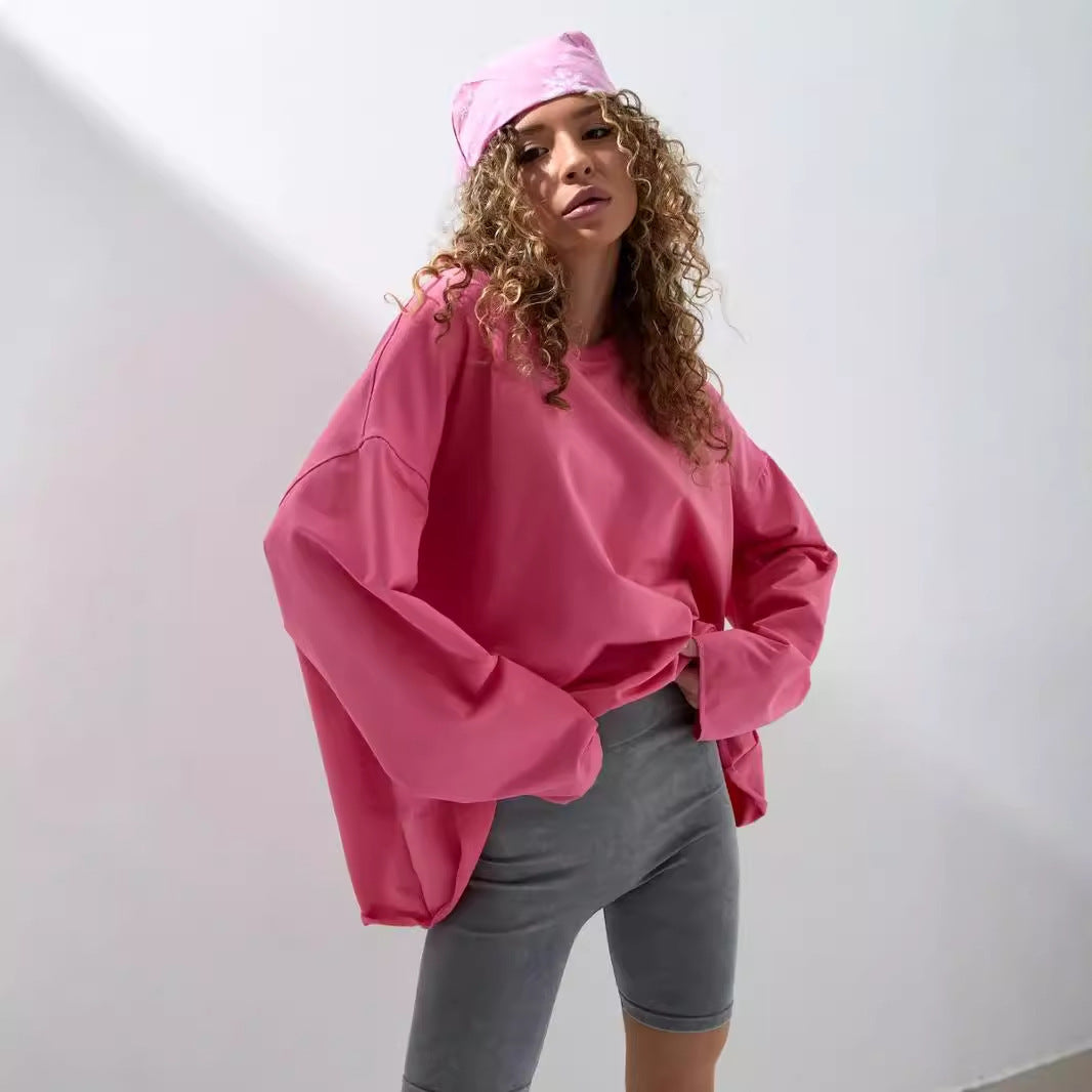Damen Oversized Langarmshirt aus weichem Baumwollmix Heidi-Mode