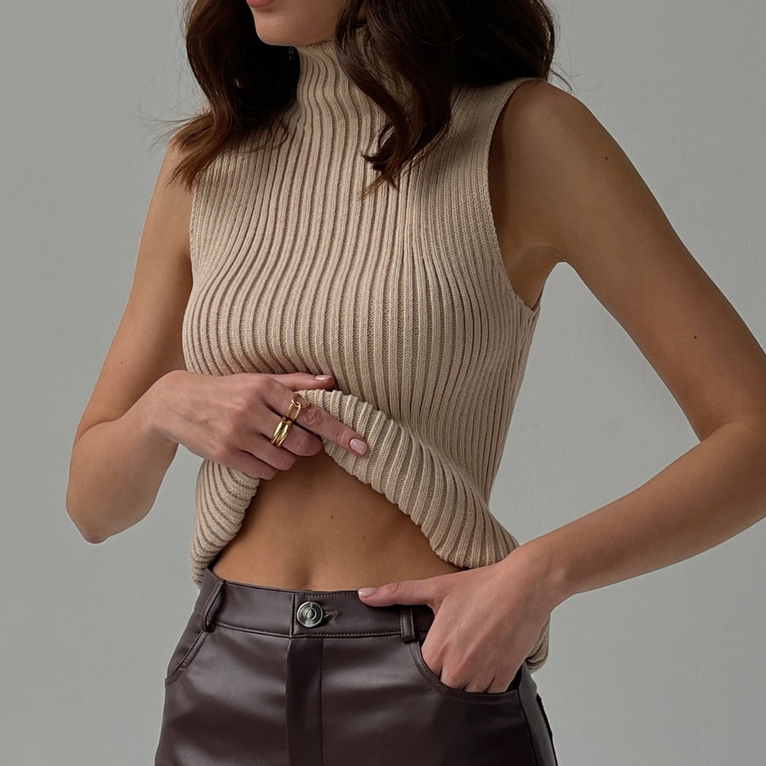 Damen Modisches Crop-Top mit hohem Halsausschnitt und figurbetonter Silhouette Heidi-Mode