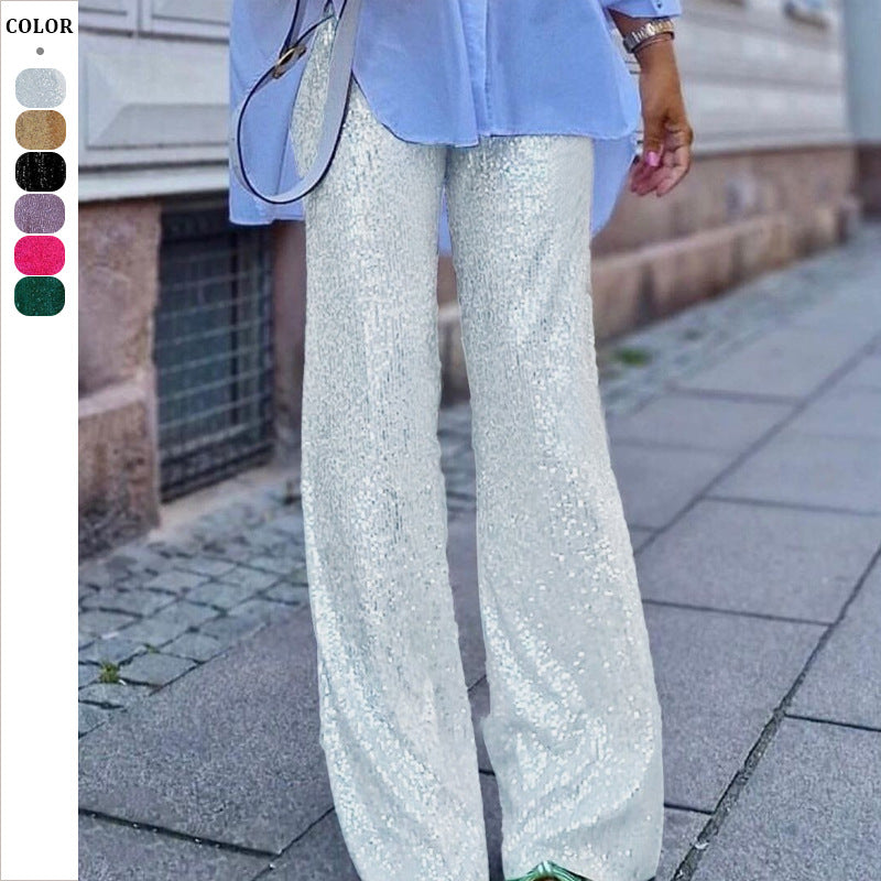 Damen Funkelnde Palazzohosen mit schimmernden Pailletten und hohem Bund Heidi-Mode