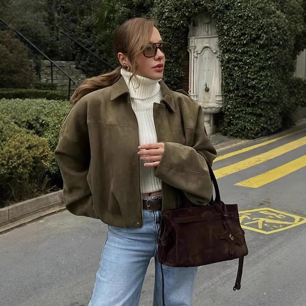 Damen oversized Kunstlederjacke mit elastischem Bund Heidi-Mode