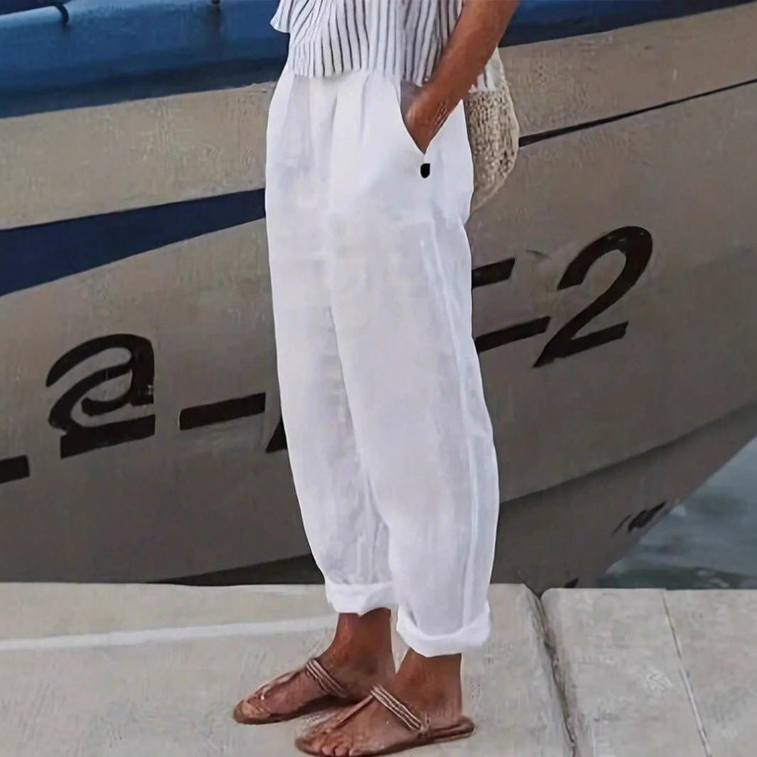 Damen Leichte und luftige Leinenhose mit elastischem Hüftbund und Seitentaschen Heidi-Mode