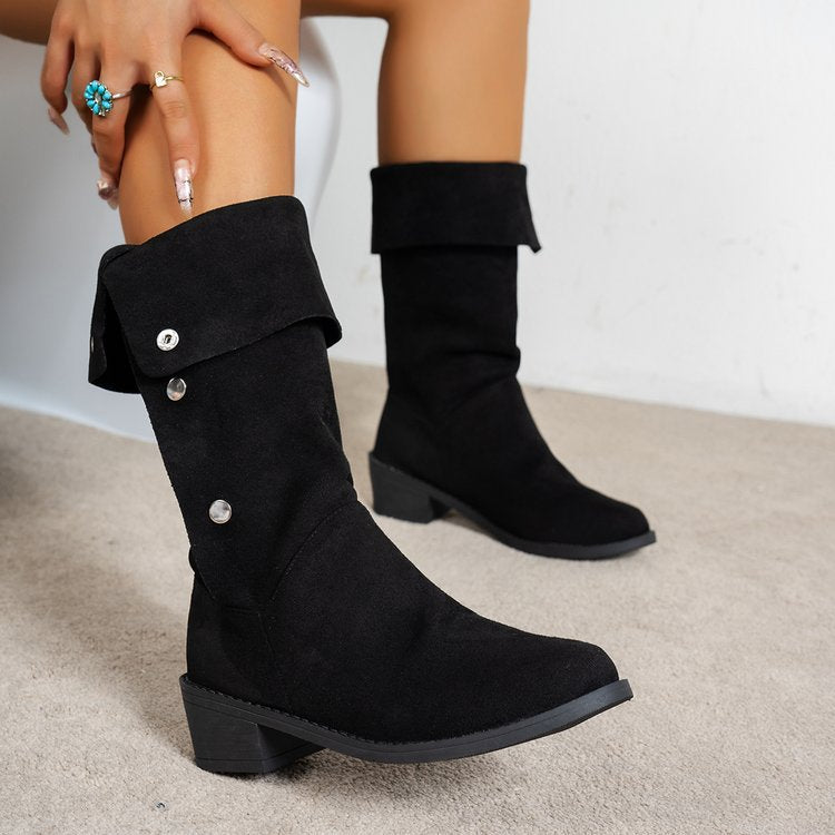 Damen Elegante Stiefel aus weichem Wildleder mit modischen Knopfdetails Heidi-Mode