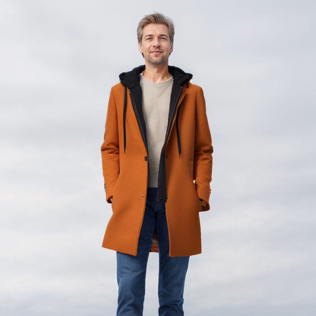 Herren eleganter Mantel mit abnehmbarer Kapuze und prämierter Isolierung Heidi-Mode