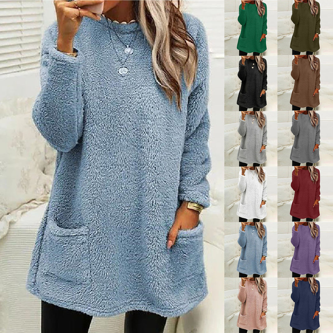 Damen Kuscheliger Fleece-Pullover mit praktischen Taschen und weitem Schnitt Heidi-Mode