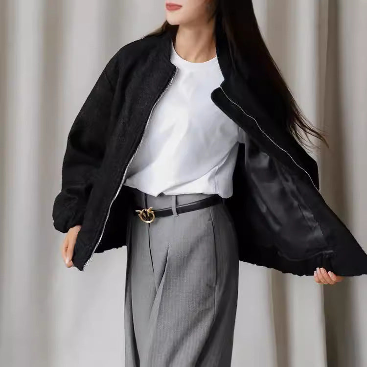 Damen Modische Bomberjacke aus weichem Wollmix mit Extragroßen Ärmeln Heidi-Mode