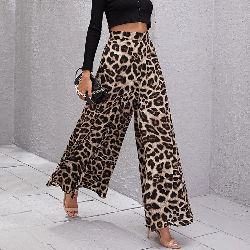 Damen Weitbeinige Hose im trendigen Leopardenmuster Heidi-Mode