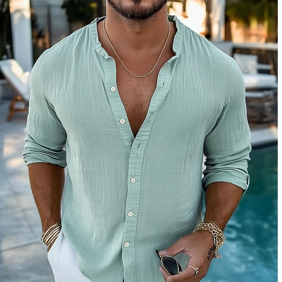 Herren lässige Leinenbluse mit durchgehendem Knopfverschluss Heidi-Mode