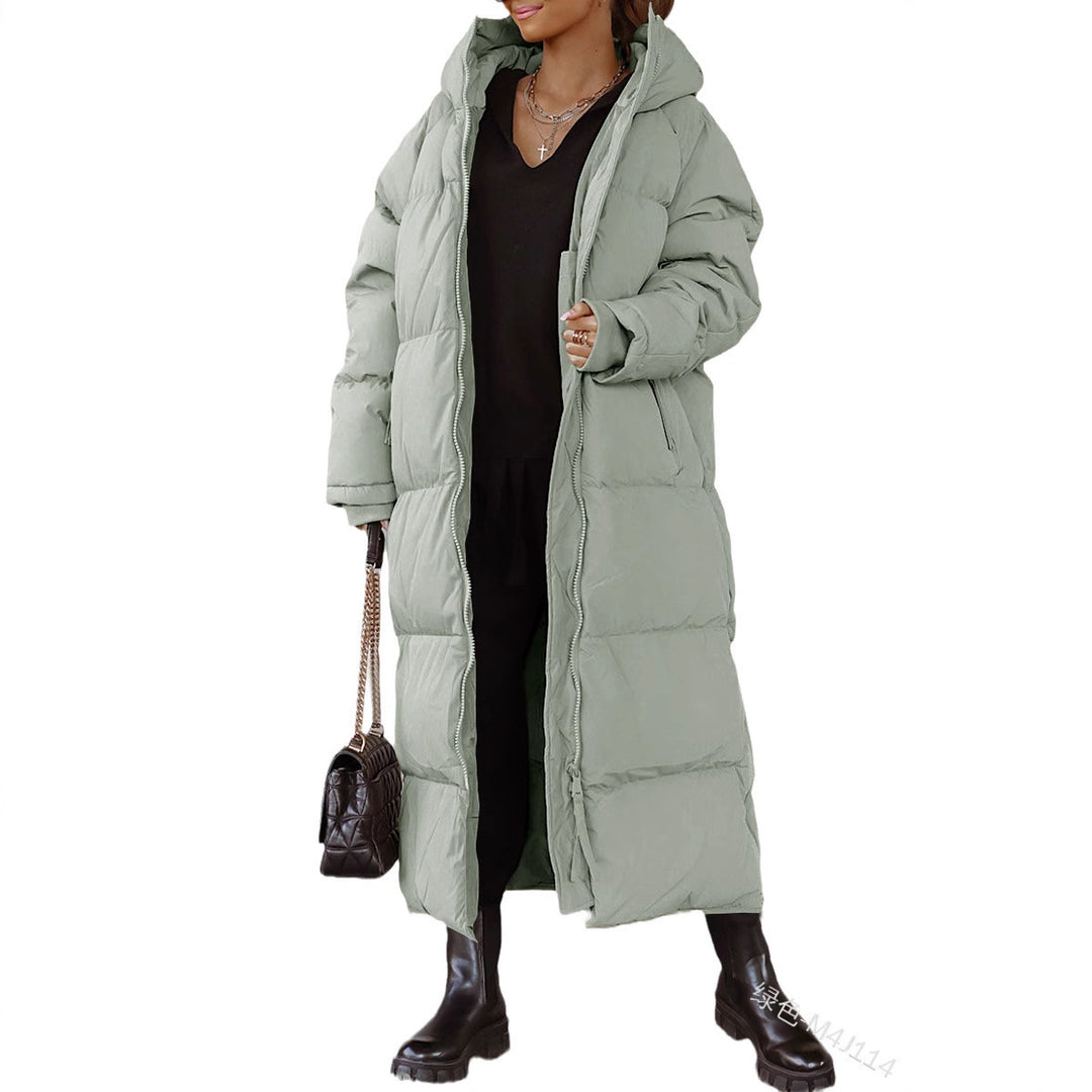 Damen Lange Steppjacke mit Kapuze Heidi-Mode