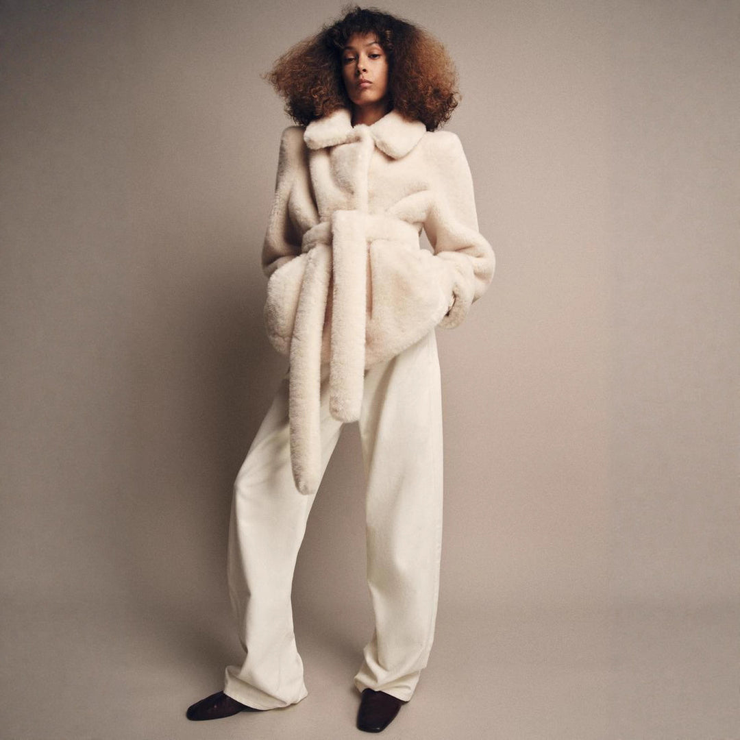 Damen Stylische Jacke mit abnehmbarem Kunstfellkragen und Knopfdetails Heidi-Mode