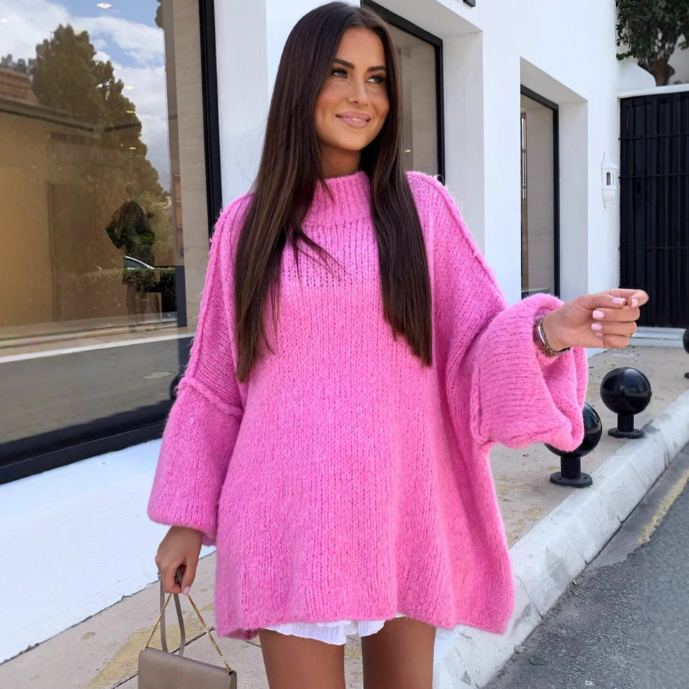 Damen gemütlicher Oversize-Pullover mit voluminösen Ärmeln und weichtexturiertem Strick Heidi-Mode