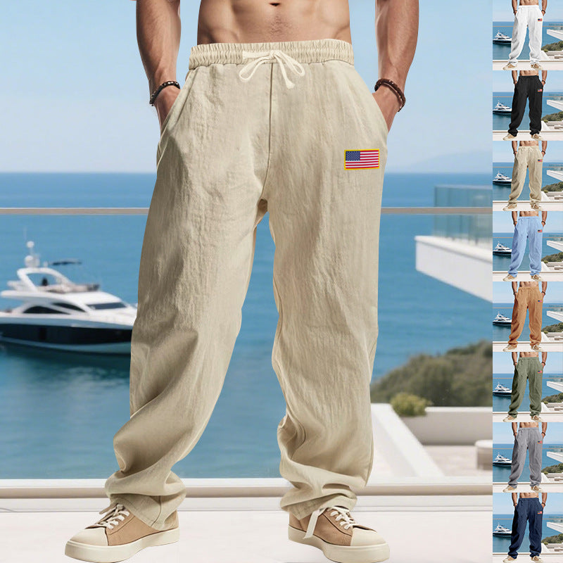 Herren entspannte Leinenhose mit verstellbarem Kordelzug und elastischem Bund Heidi-Mode