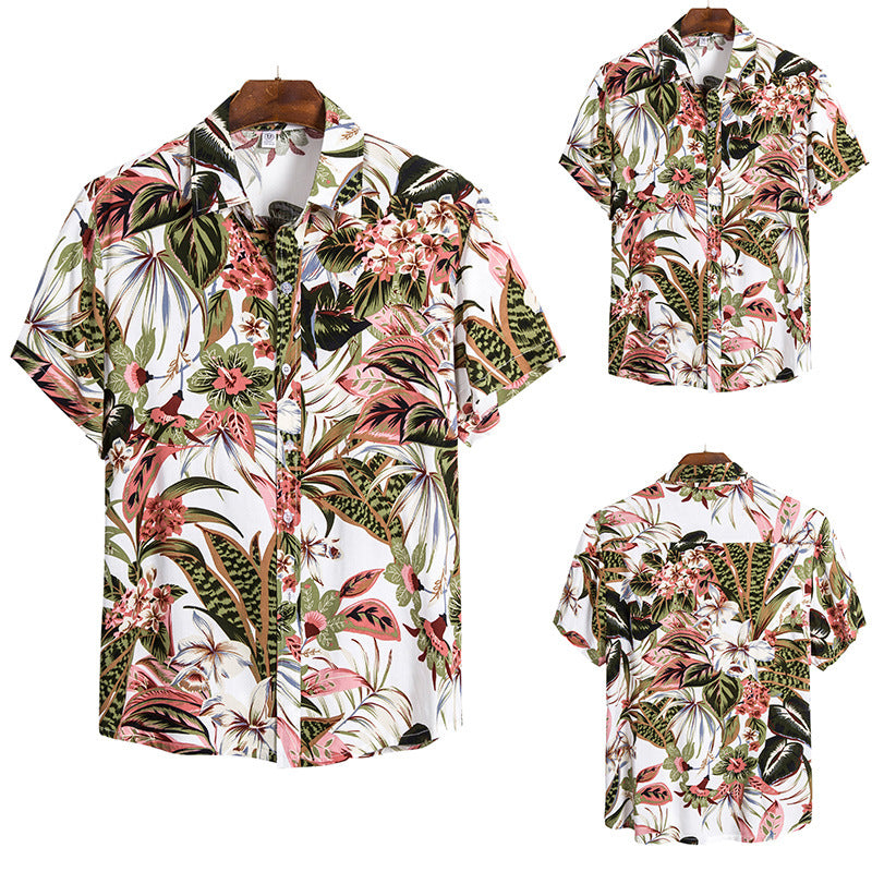 Herren Kurzarmhemd mit exotischem Pflanzenmuster und feiner Baumwollqualität Heidi-Mode